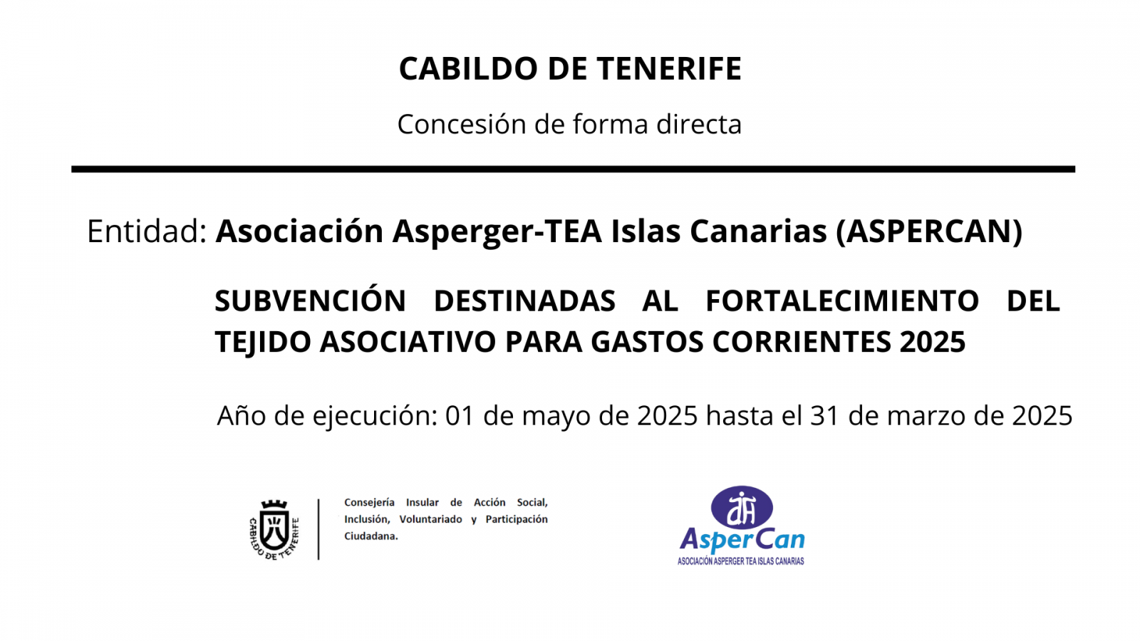 El Cabildo de Tenerife apoya a la financiación de la entidad a través de la "Subvención destinadas al fortalecimiento del tejido asociativo para gastos corrientes 2025".