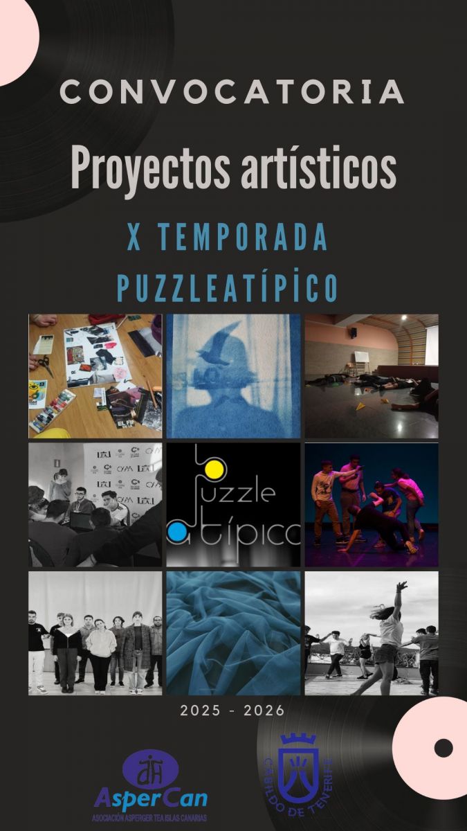 El Proyecto PuzzleAtípico han asentado los cimientos de un espacio para la emoción, la inclusión y la diversidad. PuzzleAtípico es el proyecto definitivo para la creación artística en la que personas con TEA grado 1 (Síndrome de Asperger), el/la artista o el grupo de artista, y el público crean una pieza en la que se aunan diversas disciplinas: danza, teatro, performace, videoarte, etc.