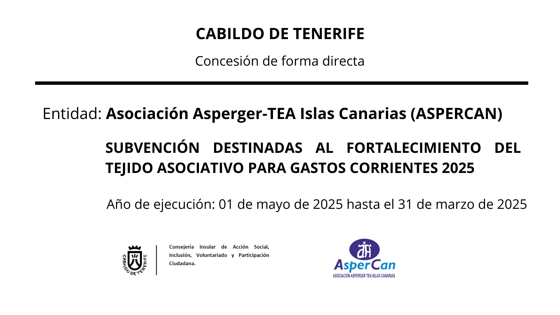 El Cabildo de Tenerife apoya a la financiación de la entidad a través de la "Subvención destinadas al fortalecimiento del tejido asociativo para gastos corrientes 2025".